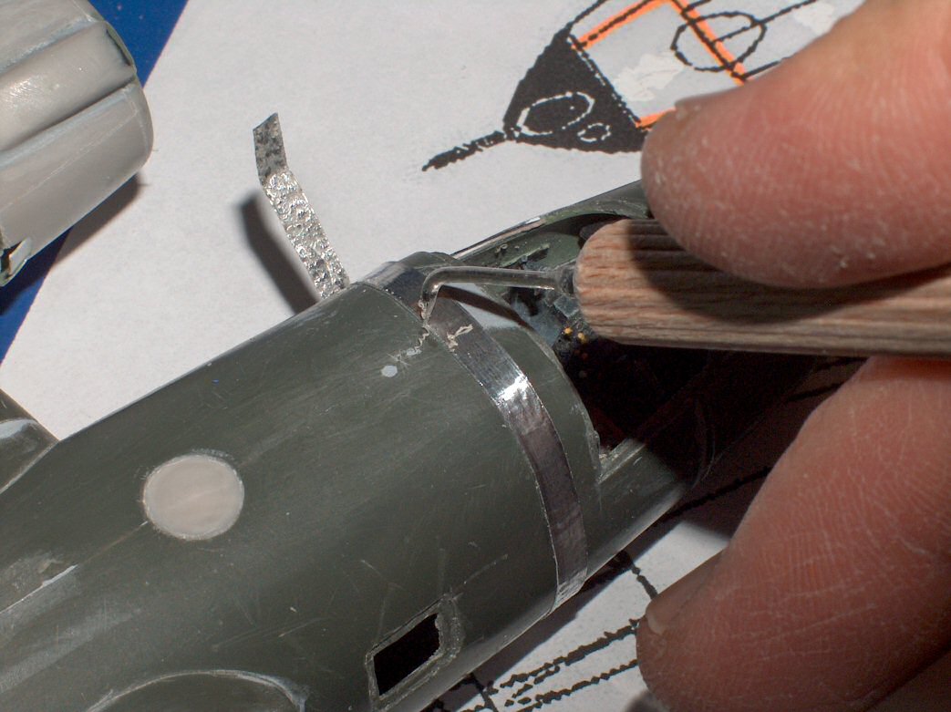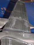 | Pour que le rendu final soit un peut plus dynamique, les flaps ont été découpés et représentés en position baissée ... C'est un travail un peu long, mais le jeu en vaut vraiment la chandelle ! Au passage, les charnières de commande des flaps ont été réalisées avec de la carte plastique en s'aidant des photos figurant dans le photoscope. |