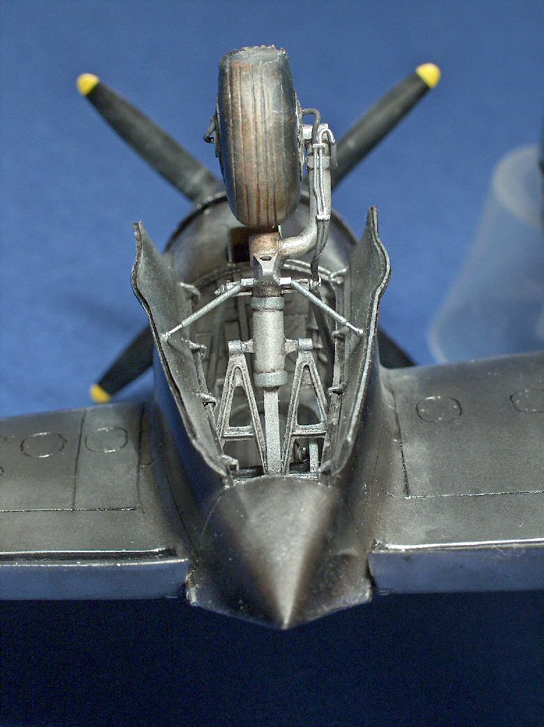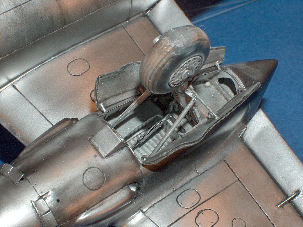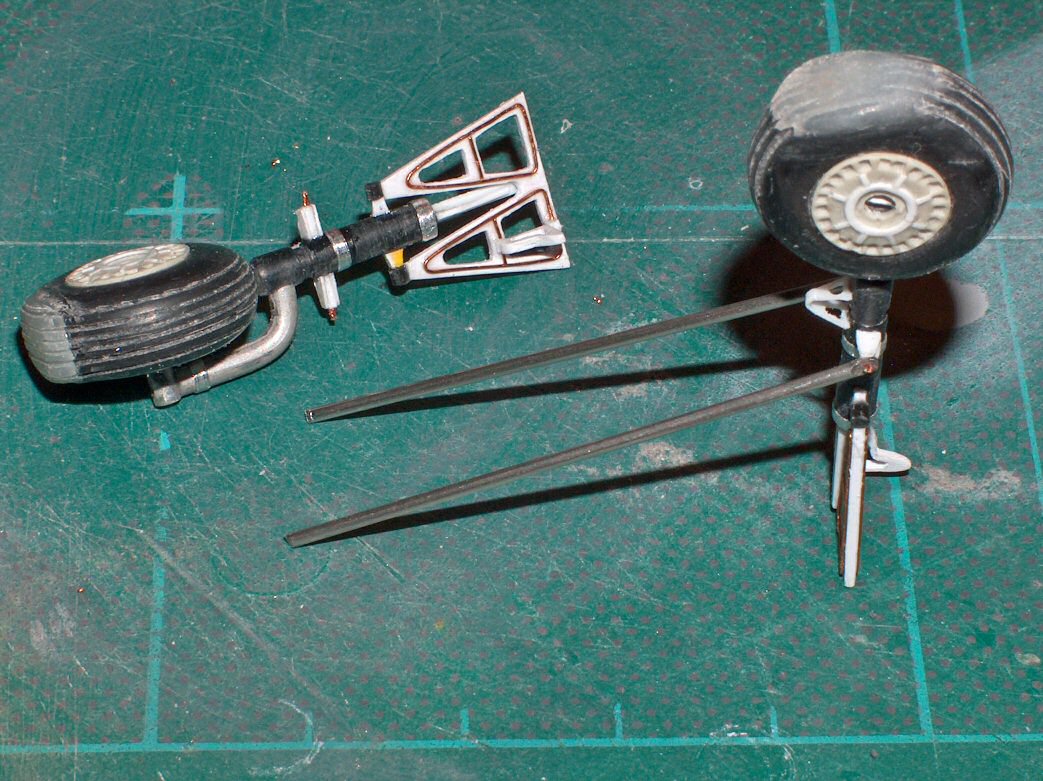 Peinture des jambes de train (celle de gauche n'a pas reçu son jus à l'huile). |