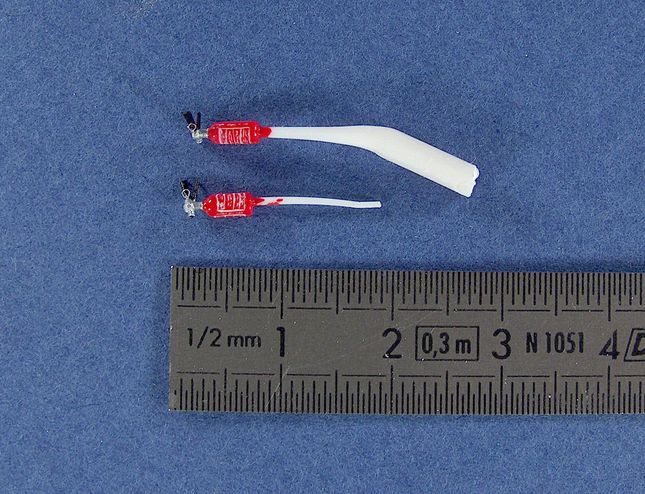 On confectionne les pare-soleil et les deux extincteurs en scratch :